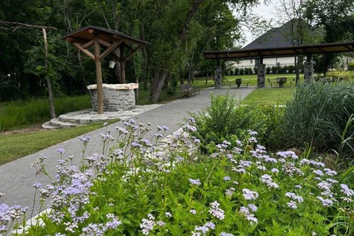 - Gathering pavilion with shaded seating